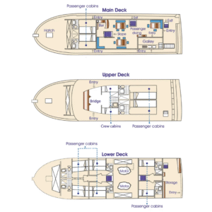 Die Kabinen werden nach dem Prinzip first come, first served vergeben. Wer eine Kabine auf dem Oberdeck bevorzugt, sollte frühzeitig buchen und die Verfügbarkeit anfragen.